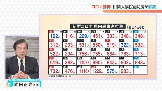 山梨大学医学部附属病院の前の院長、武田正之医師に新型コロナの感染状況などを聞きます。