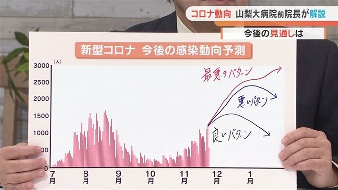 それから最悪のパターンは他の変異株が増えてきたりインフルエンザが増えてきて、どんどん増えちゃうっていう、この三つのパターンがあります。