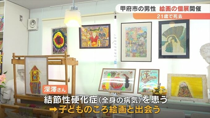 子どものころから絵を描き、21歳の若さで亡くなった甲府市の男性の個展が笛吹市で開かれています。