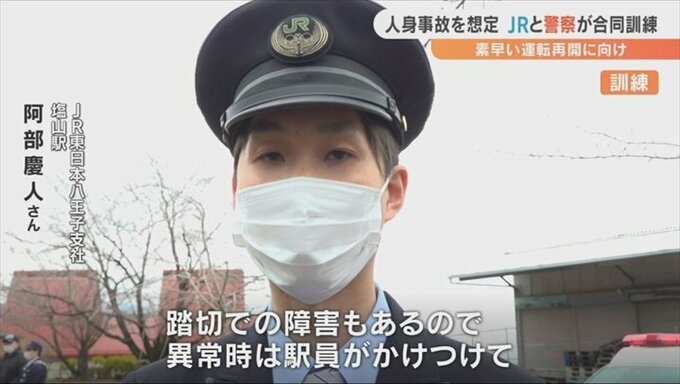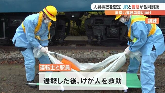 訓練では、運転士と駅員が通報したあと、けが人を救助する流れや接触事故を防ぎながら警察の現場検証に協力することなど、連携する手順も確認していました。