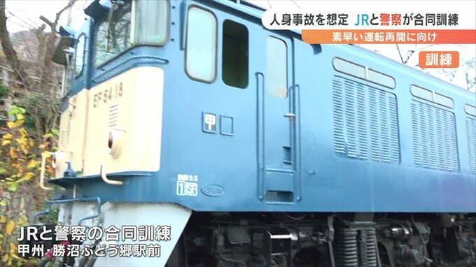 駅のホームから人が飛び込んだ事故を想定したJRと警察の合同訓練が山梨県甲州市で行われました。