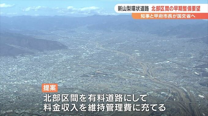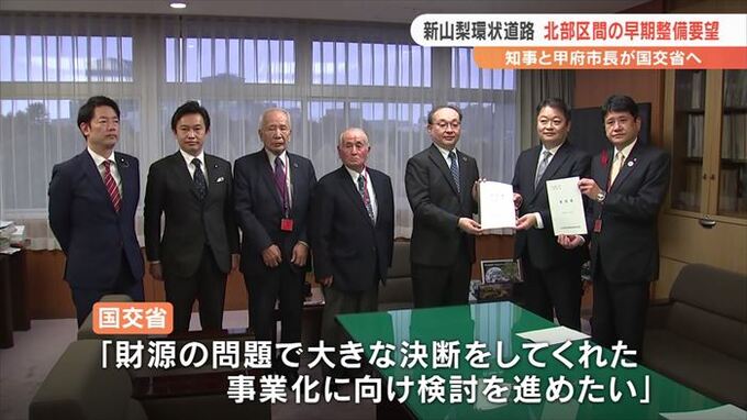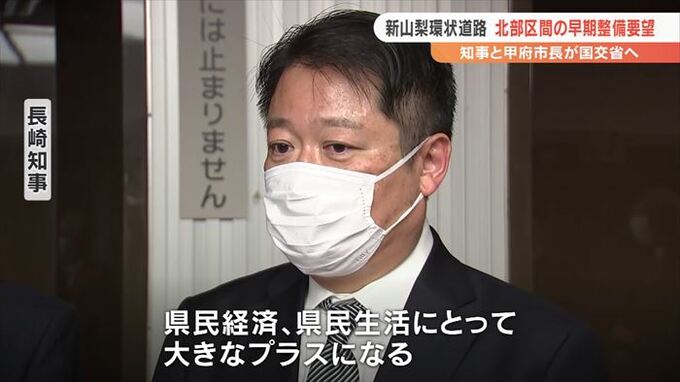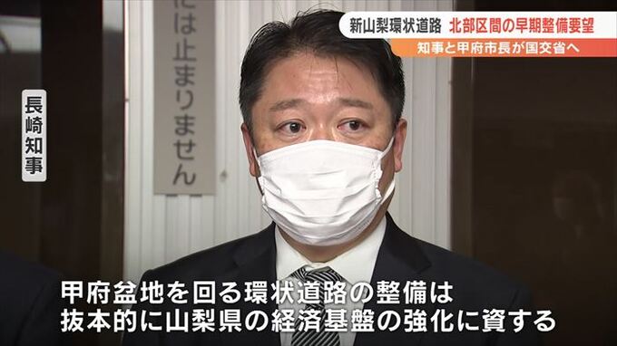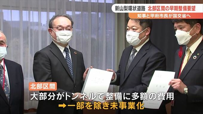 北部区間は大部分がトンネルで、多額の費用がかかることから、一部を除いて事業化されておらず、長崎知事と甲府市の樋口市長は29日に国土交通省を訪れ、早期整備を要望しました。