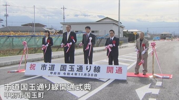 用地買収が難航 開通まで29年 甲府市の市道国玉通り線が開通 渋滞緩和や歩行者の安全確保に期待 2022年11月30日(水) 17:25 国内 甲府市の市道国玉通り線が30日に開通しました。 30日に開通したのは、国道411号城東バイパスの玉諸神社北東交差点から青沼通りの玉諸小学校西交差点の間760mを南北に結ぶ 国玉通り線です。 30日は市や地元自治…