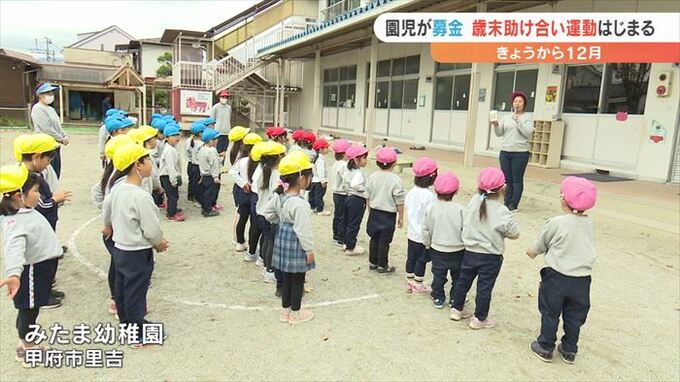 年末恒例の歳末助け合い運動がはじまり12月1日は甲府市の園児がお小遣いの一部などを募金しました。
