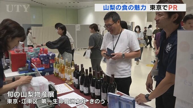 東京の生命保険会社で山梨県産品の物産展が開かれています。
