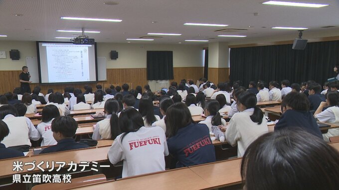 田んぼに水を張らないコメ作りを紹介する特別授業が山梨県立笛吹高校で行われました。