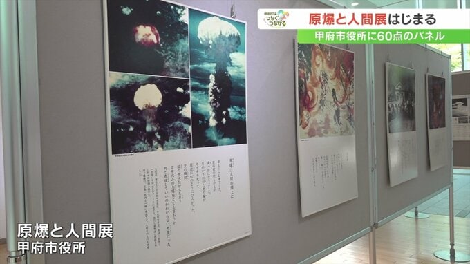 パネル展は甲府市の平和推進連絡協議会が毎年開いているもので、原爆投下後の広島と長崎の記録写真のほか絵画や証言およそ60点が展示されています。