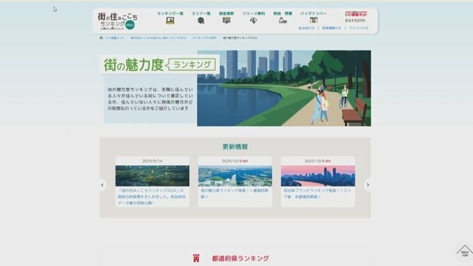 街の魅力度ランキングの都道府県別の順位が発表されました。