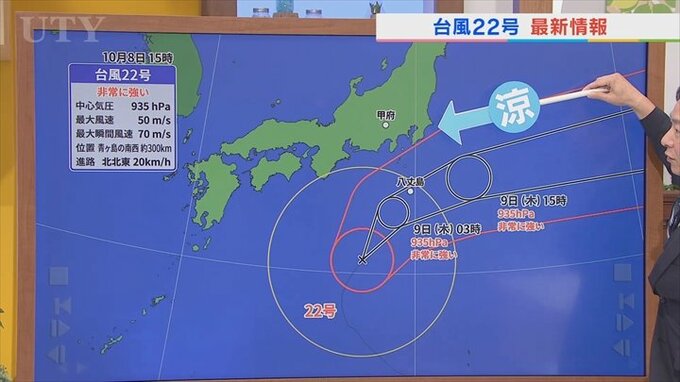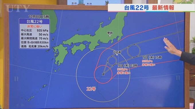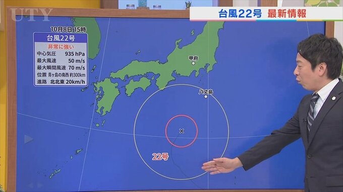 伊豆諸島では、暴風雨と波浪の特別警報も発表されていまして、これは数十年に一度起こるかどうか、重大な災害が起こる恐れが極めて高いという情報も発表されているような状況です。