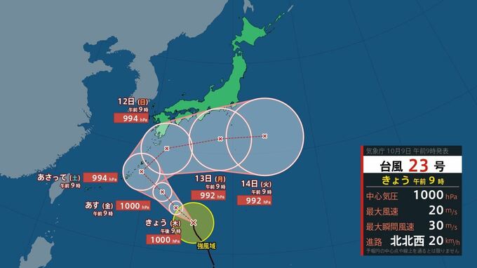 台風第23号は、9日9時には