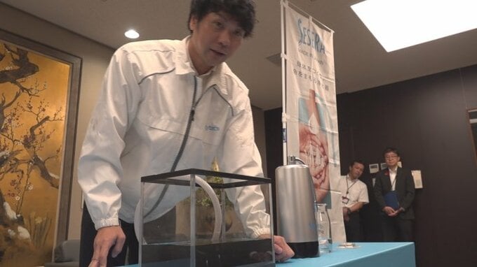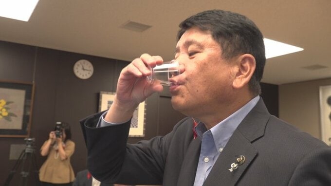 9日は食用の炭を入れた水道水を浄化する様子が披露され、樋口市長が試飲しました。