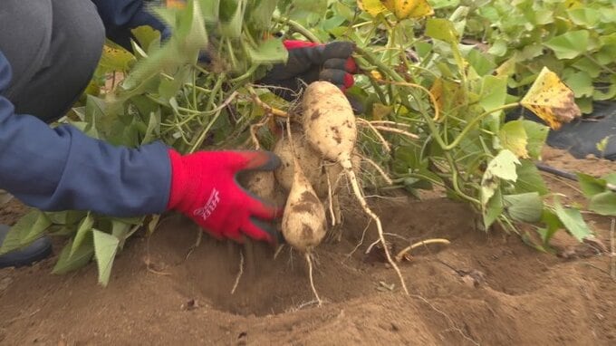 「食卓をカラフルに楽しく食べて」白いサツマイモ“きみまろこ” 種苗会社が10年以上かけて品種改良 山梨・北杜市 2025年10月14日(火) 18:45 国内 収穫の秋の話題です。 見た目が真っ白なサツマイモが山梨県北杜市で収穫時期を迎えています。 北杜市明野町のサツマイモ畑です。 掘り起こしてみると…真っ白なサツマイモ『きみまろこ』です。