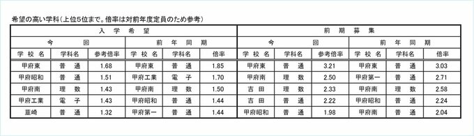 【全校掲載】中学3年生の第一次進路希望調査 全日制公立高校の参考倍率は0.999倍 2年連続で1倍を下回る 山梨