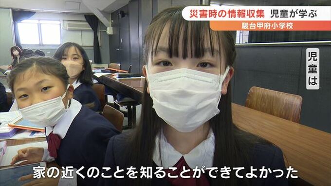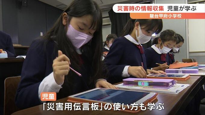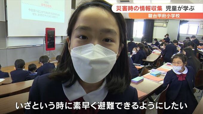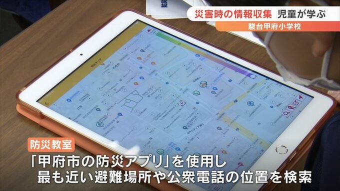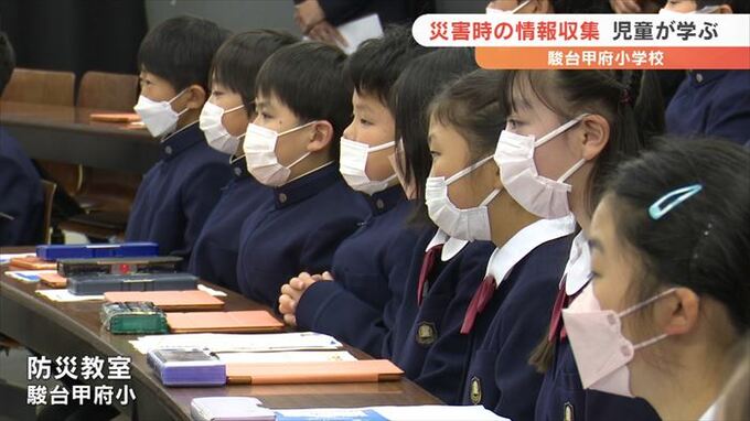 一人でいるときに災害が起きた場合、携帯電話などを使ってどう情報を集めるかを学ぶ防災教室が、駿台甲府小学校で開かれました。