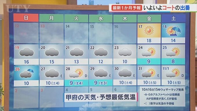 すると1桁の気温も出てくる見通しです。1桁の気温って大体目安で言うと、冬物コートが必要なぐらいの気温となるんです。ですから、この週末にはちょっと衣替えの準備を進めるようにお願いします。