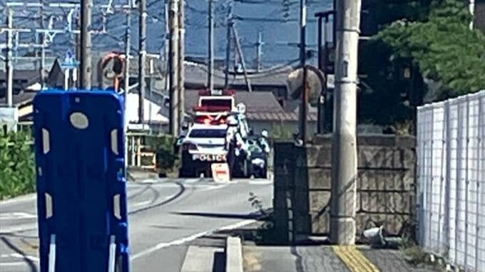 この事故で警察は午前9時40分から県道208号線=下神内川石和温泉停車場線の松本踏切から山崎踏切までの間を通行止めとしました。