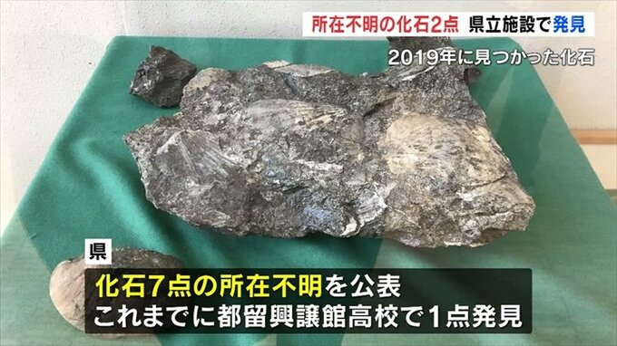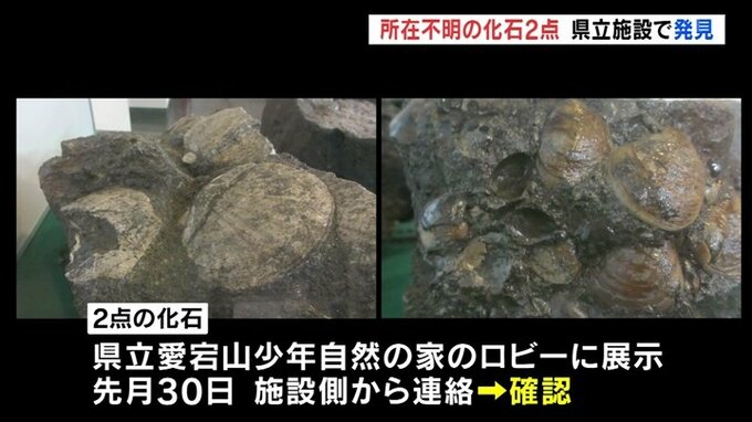 県によりますと化石は県立愛宕山少年自然の家のロビーに展示されていて11月30日施設から情報提供があり、所在不明の化石と確認できたということです。