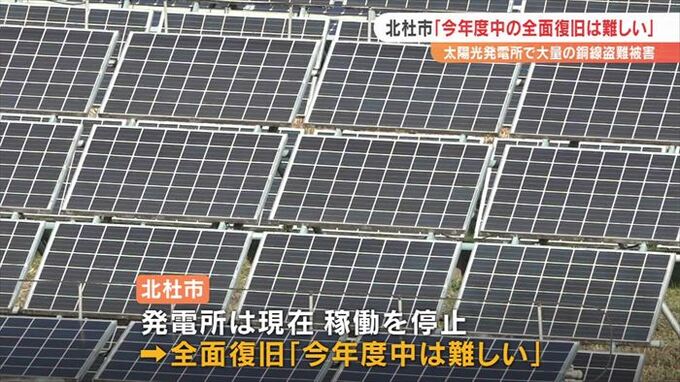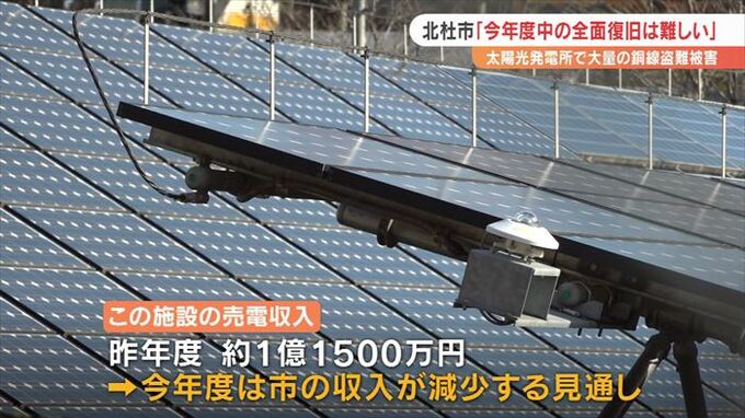 山梨県北杜市が運営する太陽光発電所で、大量の銅線ケーブルが切断されて盗まれた事件、市は2022年度中の全面復旧は難しいという認識を示していて、市の収入が減少する見通しです。