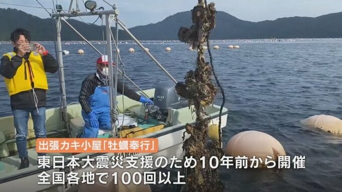 このカキ小屋は東日本大震災の復興支援のために10年前から始まったもので、これまでに全国各地で100回以上開催されています。