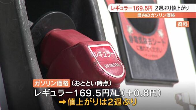 山梨県内のレギュラーガソリンの平均小売り価格は169.5円で先週より0.8円値上がりしました。