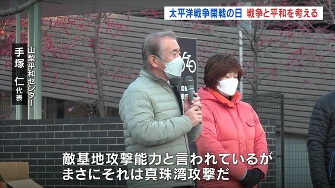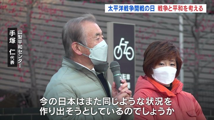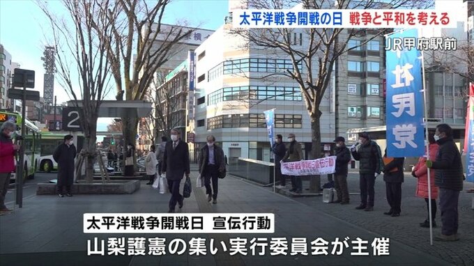 12月8日の太平洋戦争開戦の日に合わせ、戦争と平和について考えようという街頭活動がJR甲府駅前で行われました。