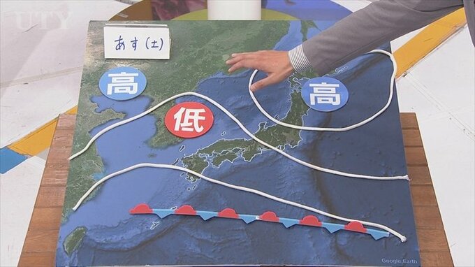 降る時間帯は昼頃からとしていますが、最新の予報を見ると雨の降り出しが午前中からに早まる可能性があります。ですからあすお出かけの際は傘の準備を忘れずにお願いします。