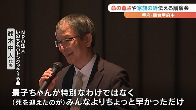 娘を病気で亡くした父親による講演会が、甲府市の中学校で行われました。