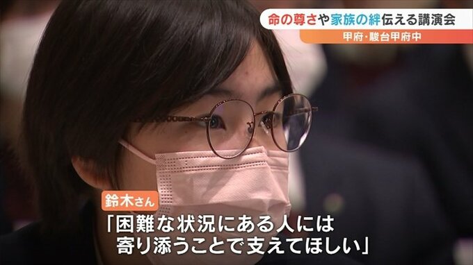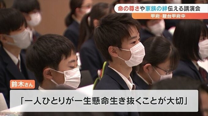 また、鈴木さんは「困難な状況にある人には寄り添うことで支えてほしい」と呼びかけ、生徒たちは命や絆の大切さを心に刻んでいました。