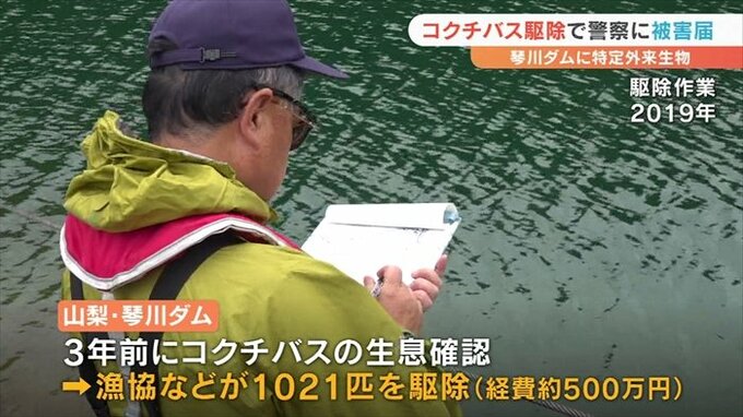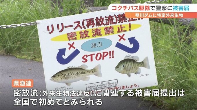 山梨市の琴川ダムで特定外来生物の「コクチバス」の生息が確認され、本来必要のない駆除作業が生じたとして、漁協が警察に被害届を提出しました。
