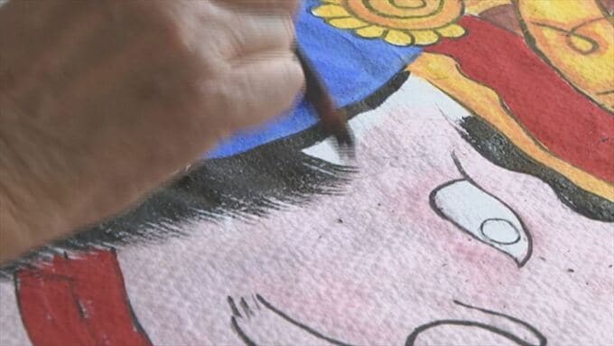さらに、武者のひげを描く際には筆の使い方もひと工夫しています。