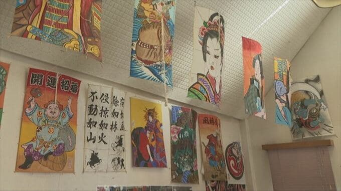 渡辺さんは今年90歳の卒寿を迎えた記念に、南アルプス市荊沢の空き店舗で個展を開いています。会場にはこれまで制作した選りすぐりの和だこおよそ40点が展示されています。
