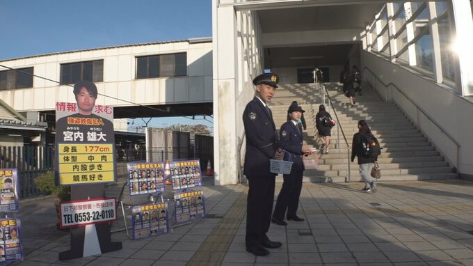 宮内容疑者は長野県出身で、30日は長野県のJR茅野駅で山梨県警と長野県警が初めて合同で顔写真や身長が書かれたティッシュを配り情報提供を呼びかけました。