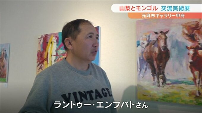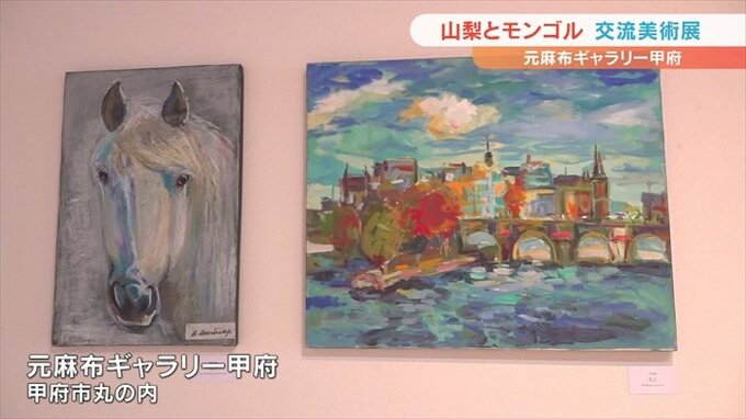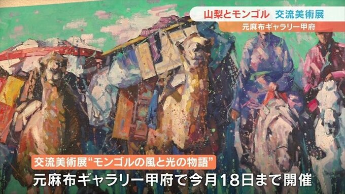 山梨大学と交流を続けるモンゴルの芸術家の作品展が甲府市で開かれています。