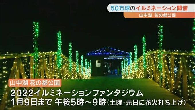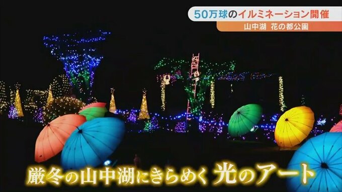 山中湖花の都公園で50万球が輝くイルミネーションが開催されています。