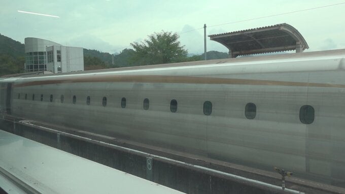 今年7月に試験走行が始まったリニア中央新幹線の新しい中間車両「M10」は東京―名古屋間が開業した時のベース予定となる車両で、シルバーの車体に高速で流れる光をイメージした金のラインが入っています。