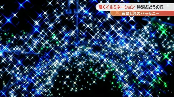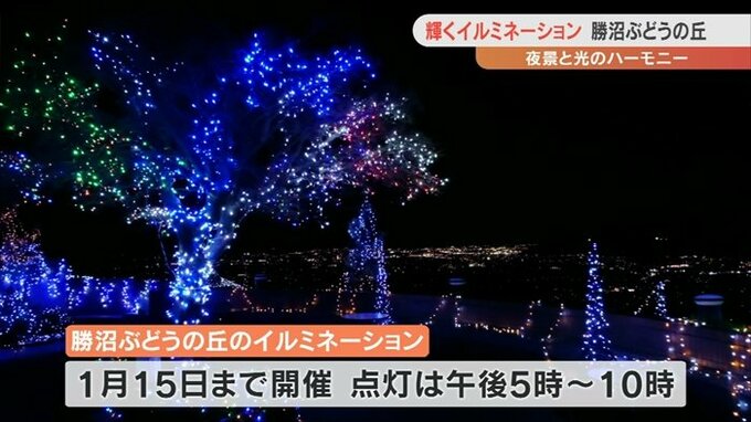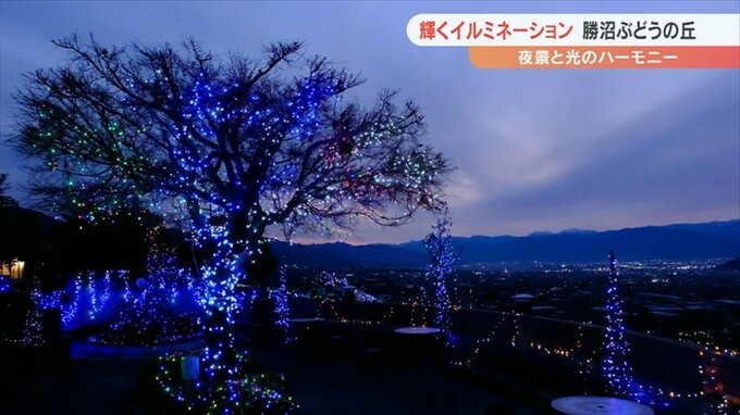 勝沼ぶどうの丘のイルミネーションは、1月15日まで午後5時から10時の間、点灯します。