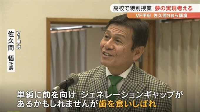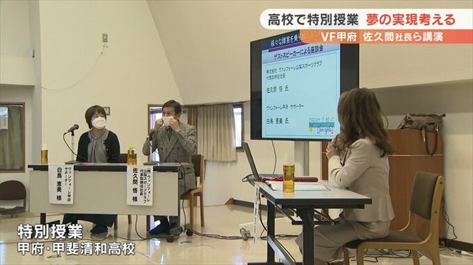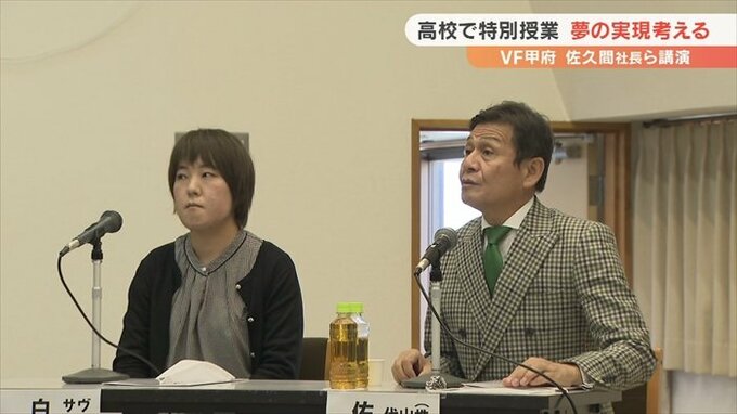 女性の夢の実現について考える特別授業が山梨県甲府市の高校で行われヴァンフォーレ甲府の佐久間社長らが講演しました。