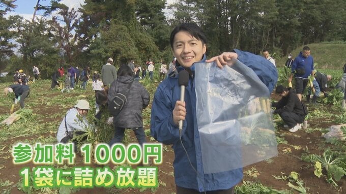 訪れた人たちは家族や友人とともにダイコンを収穫し中には1袋に10本以上詰める人もいました。