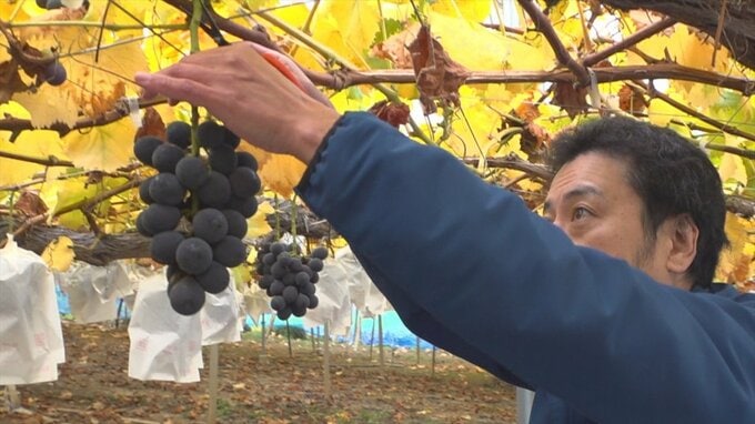 山梨市牧丘町では3日に「こがらしぶどう」の巨峰の出荷が始まり、ブドウ畑では農家がひと房ずつ丁寧に収穫していました。