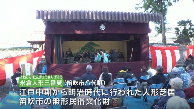 江戸時代から伝わる人形芝居「米倉人形三番叟」がが山梨県笛吹市の神社で披露されました。