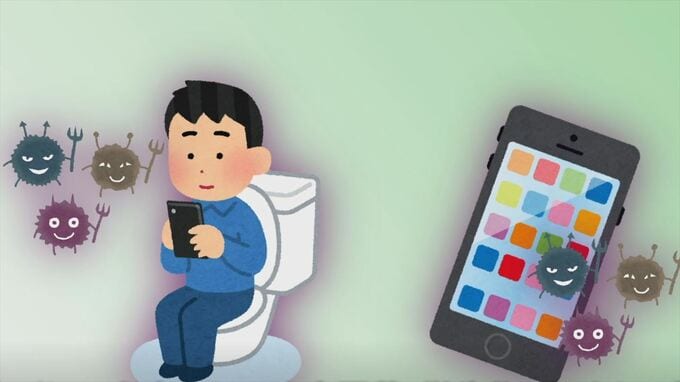 「トイレなどで使用しているときにスマートフォンを触ってしまうと、トイレに存在している病原菌、微生物、ウイルスも含め、スマートフォンに乗ってしまう」