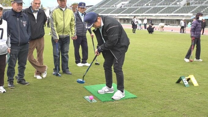 交通安全知識が学べる高齢者を対象にしたグラウンドゴルフ大会が甲府市で開かれました。