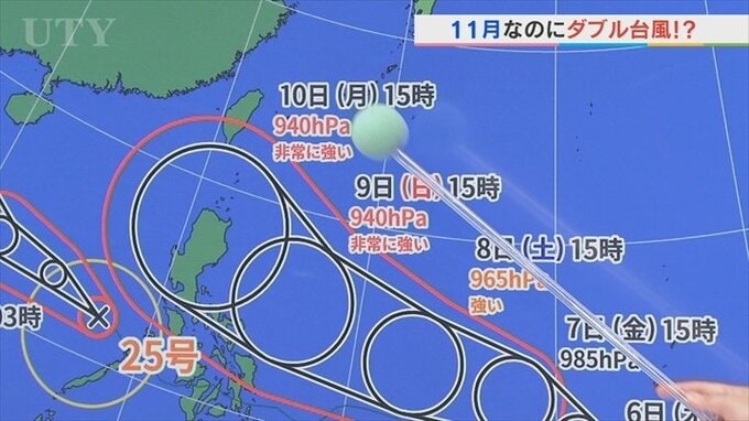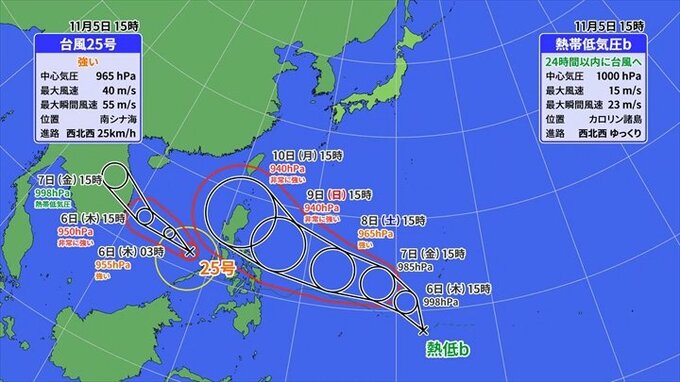 ではまず、25号と熱帯低気圧の進路を2つ同時に見ていきます。