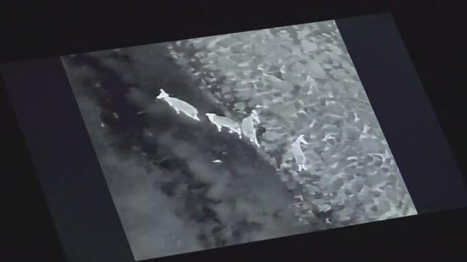 こうしたことを受け町は6日未明から民間の会社と協力し、目撃情報があった笛吹川のおよそ1.5キロの河川敷を赤外線のカメラを搭載したドローンで調査しました。