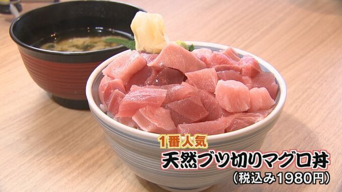 1番人気は、マグロ好きの県民性を反映した天然ブツ切りマグロ丼!