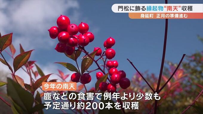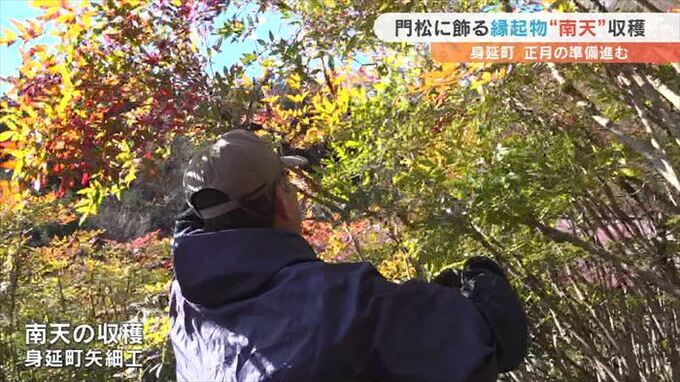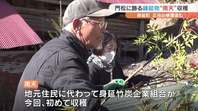 山梨県身延町で門松に飾る縁起物=南天の収穫が行われました。