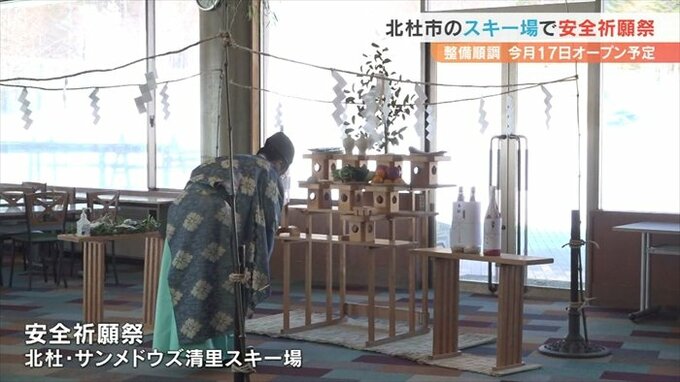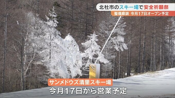 山梨県北杜市のスキー場で、今週末のオープンを前に安全祈願が行われました。