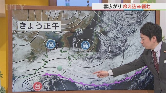 この雲の要因が、日本の南にある前線によりまして、この前線の北側で雲が盛り上がっている状況です。