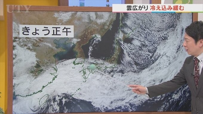 こちら日本列島となっていまして、この白い部分が雲に当たります。山梨県内もこの雲がかかったことで気温があまり上がりませんでした。