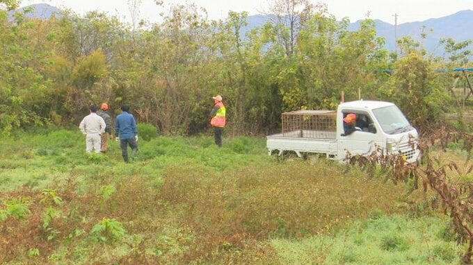 畑にクマのものと見られるフン 付近に全長2m 高さ1mの箱わな設置 市は一人で出歩かないなど注意呼び掛け 山梨・甲州市 2025年11月13日(木) 11:53 国内 12日、クマのものとみられるフンが見つかった山梨県甲州市の畑に、市が捕獲用の箱わなを設置しました。 12日午後4時半ごろ甲州市塩山三日市場の畑でクマのものとみられる直径およそ10センチのフン2個がみつかりました。